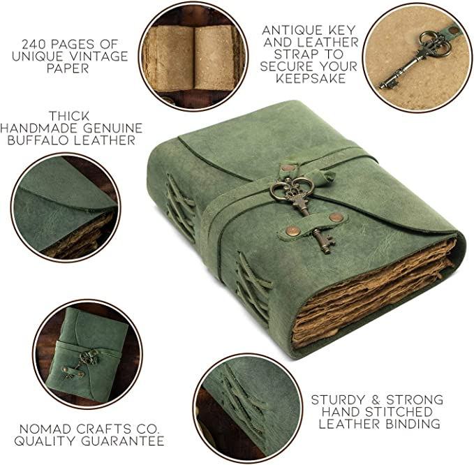 Book of Shadows Leather Journal with Key - Vintage Brown